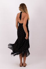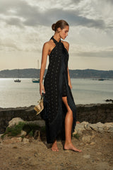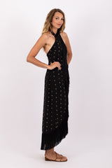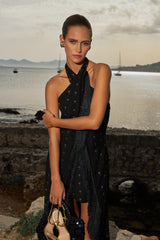Entirely adorned by golden palmtrees, Capri fit is inspired by the essential beachwear, the pareo. A gathered flounce runs along the piece and offer lightness to movements.