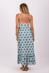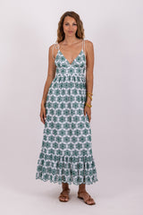 Made in eyelet with a green topstitching which highlight details, Louve dress is defined by an open back and a lingerie style top which can be adjusted on the shoulders thanks to spaghetti links. The bottom is adorned by a light gathered flounces for a sublime fall. It has an invisible slide fastener on the middle back.