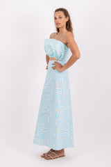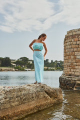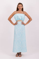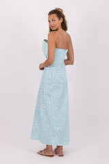 Made in an exclusive Sundress print, Shelly dress is an original dress with an opening on the belly. The top drapped effect is inspired by a shell. It has spaghetti straps and an invisible slide fastener on the back. This dress is synonym of lightness.