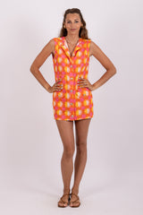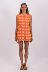 Made in an exclusive flowery print that was imagined and developed by our designer, Nadege is a sleeveless dress sublime by shell buttons and flap pockets.