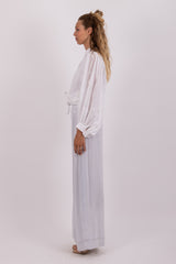 Entirely adorned by sequins, Janis is a light and flared pant with an elastic at the waist.