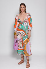 MEGAN DRESS HAVANA LINEN BIG TUTTI FRUTTI