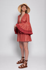LIZ SHORT DRESS TERRACOTTA AND GOLD