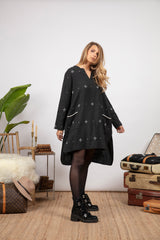 MASHA BLACK / OFF WHITE EMBROIDERIES SHORT DRESS
