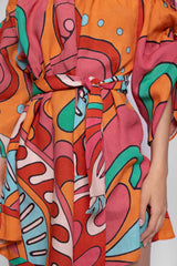 GEMMA SHORT DRESS BIG HAVANA LINEN FRAMBOISE