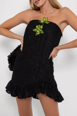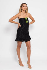 Beautiful strapless dress, slight and pleasant to wear. Francette will adapt to all your movements of dance ! Two little green flowers at the neckline give a touch of elegance ! Zip on the side to make it easier to put on your dress.