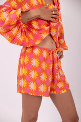 Made in an exclusive Sundress print, Liam set is made up of a short and oversized kimono with a separate belt and a short elasticated at the waist. Made in an exclusive Sundress print, this fabric is a light-as-hair fabric.
