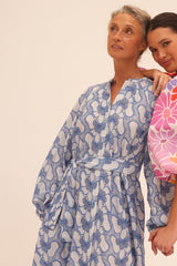 Made in beautiful eyelet, Magnolia is a long dress with a V slit neckline prettily highlighted by a buttonhole which runs long the dressIt has invisible pockets and a separate belt can be tied at your waist according to your mood.
