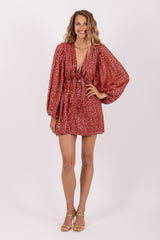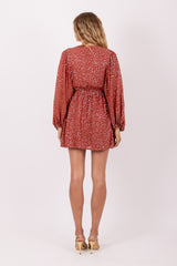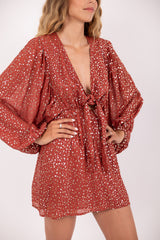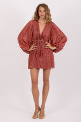 Made in a flowery exclusive Sundress print, Sia is a light dress with a plunging V neckline adorned by a tie. Very flared sleeves are tightened at the cuff for more volume. It is elasticated to highlight the waist.