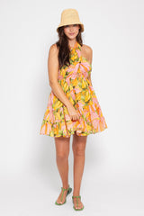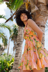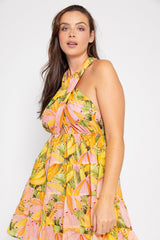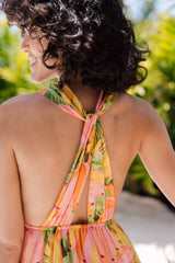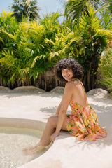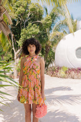 Sublime by shiny threads, the tropical print was imagined and developed by our designer. Suzy dress has two yokes crossed on the chest, joined on the back and create a sophisticated open back. Very flared, the light bottom has seven gathered yokes which offer a sublime fall. An elastic allows to adjust the dress at your waist. This dress is synonym of lightness.