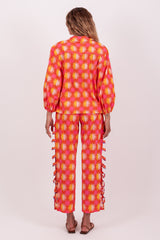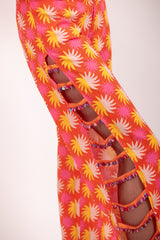 Made in an exclusive Sundress print which was imagined and developed by our designer, Paul is a colorful pant with indented slit entirely adorned by sequins which brings feminity and originality to your look. Opt for a total look with Joe shirt or Faustine top.