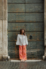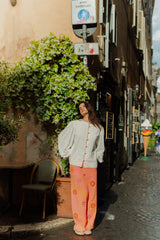 Made in a gingham adorned by sun cut details, Coquelicot pant is matching with Alban vest, creating a harmonious and elegant ensemble. The trousers feature a comfortable, relaxed fit that allows freedom of movement while maintaining a polished appearance. Perfectly balanced between comfort and style, they can be worn as a set with the jacket or styled separately.