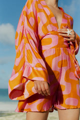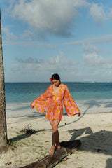 Made in an exclusive Sundress print which was imaged and developed by our designer. Thais is a jumpsuit with an integrated belt which can be tied in the back. Featuring wide, airy sleeves and a deep V neckline, it blends effortless elegance with a touch of bohemian charm . It is ideal for every hot summer days and evening party on the beach.