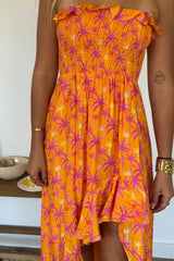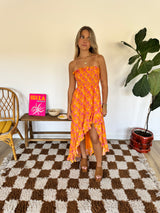 Made in a exclusive print imagined by our designer, Eren is a nice strapless dress that can be worn for many occasions from beach to evening.