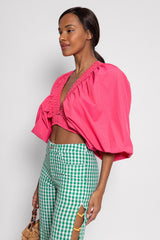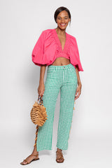 The top is pictured with Paul pant denim, Paul pant gingham, Leo pant and Jordan bag