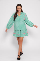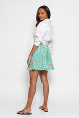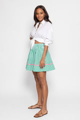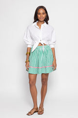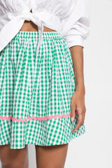 Made in gingham, Candy is a flared skirt adjusted at the waist thanks to an elastic. A rickrack line adorned the bottom. Opt for a total look with Joe shirt