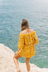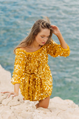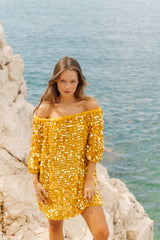 CARINA SHORT DRESS CROCHET BIG SEQUINS YELLOW