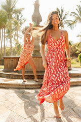Made in a fabric prettily embroidered by shiny yarns, Cirka has thin adjustable straps which are crossed on the open back and offer a feminine V neckline on the front. An elastic allows to highlight the waist and a gathered yoke brings lightness to movements. This shiny dress must be a perfect evening dress or wedding guest dress.