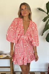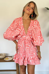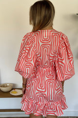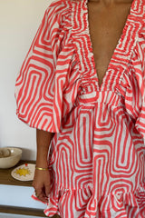 Made in an exclusive Sundress print imagined by our designer, Marine is a short dress inspired by our iconic Alicia jumpsuit. It has kimono sleeves tightened at the cuffs thanks to an elastic for more volume. Its V neckline has an elastic embellished by little gathers. An elastic allows to adjust the dress at the waist.